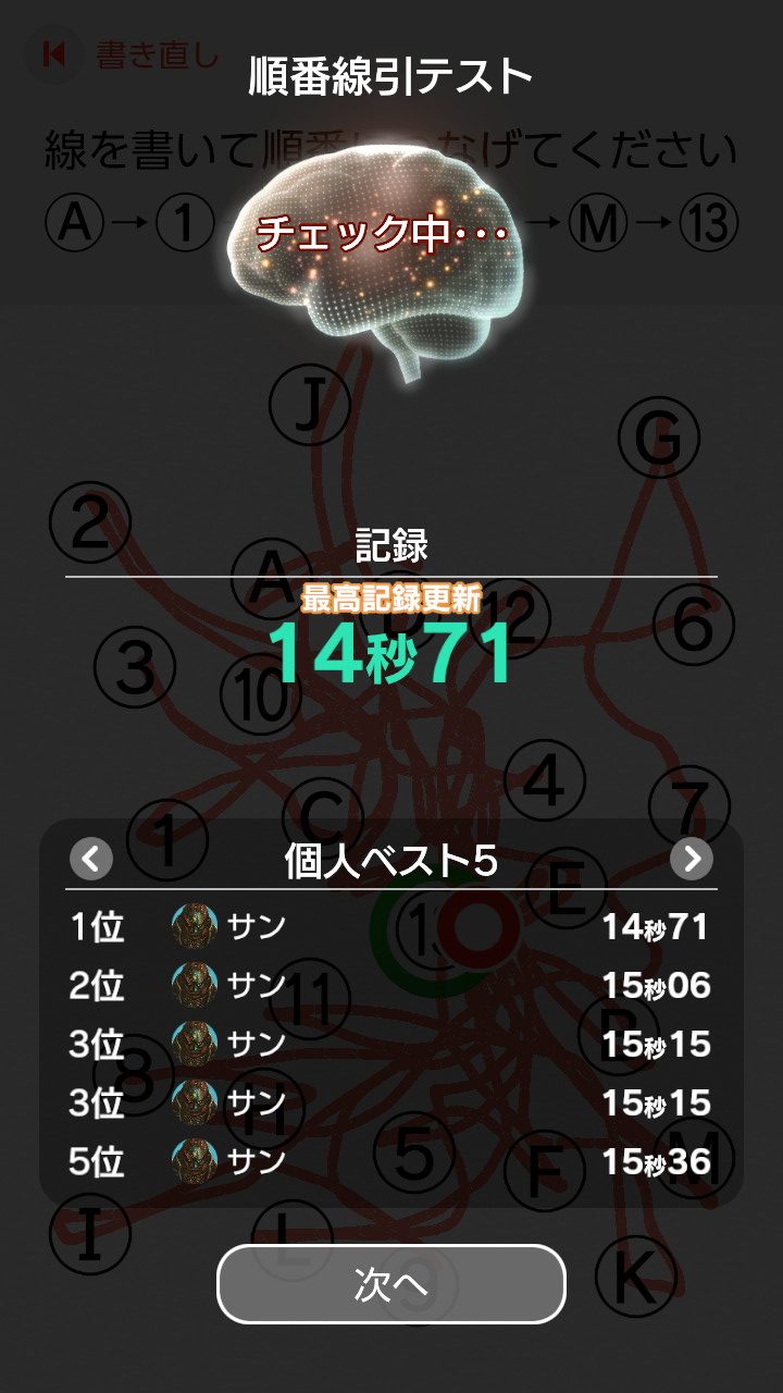脳年齢チェックは連続減算で、鬼ネズミは8に上がるもののダメだった。